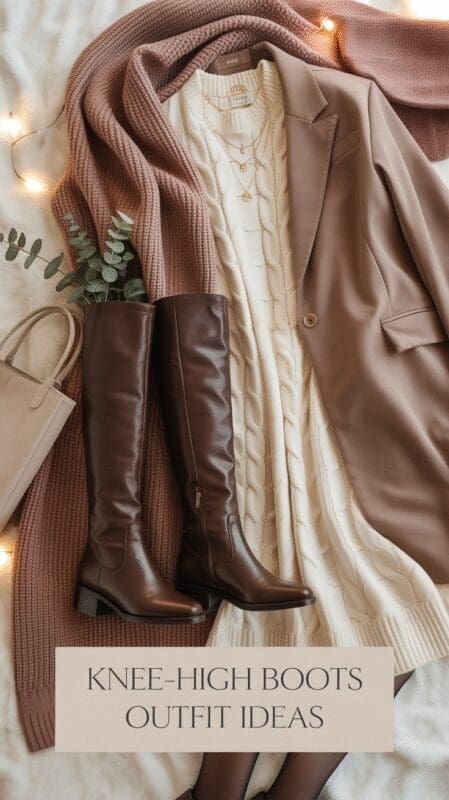 Styling idea: Combine knee-high boots with a knit midi dress, blazer, and simple jewelry for a quiet luxury winter look that feels both warm and professional.