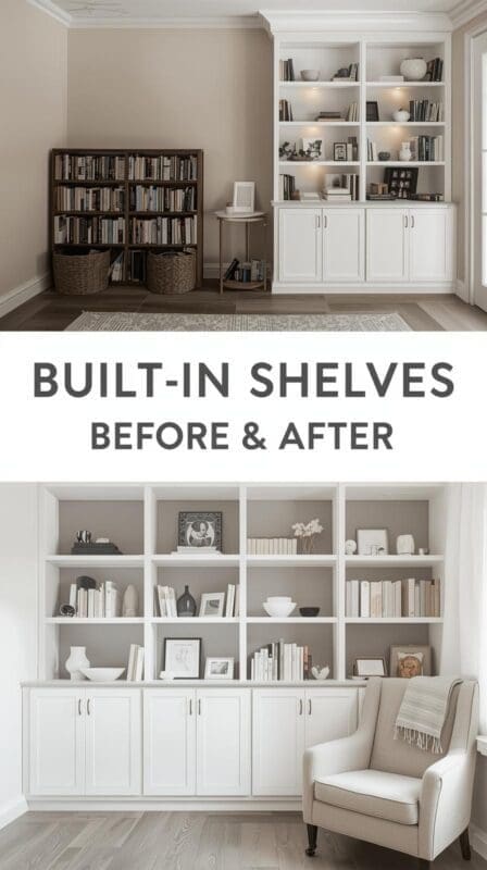 Built-ins increase both storage value and property appeal — ideal for keywords like built-in bookshelf ideas, custom shelving, and home renovation inspiration.