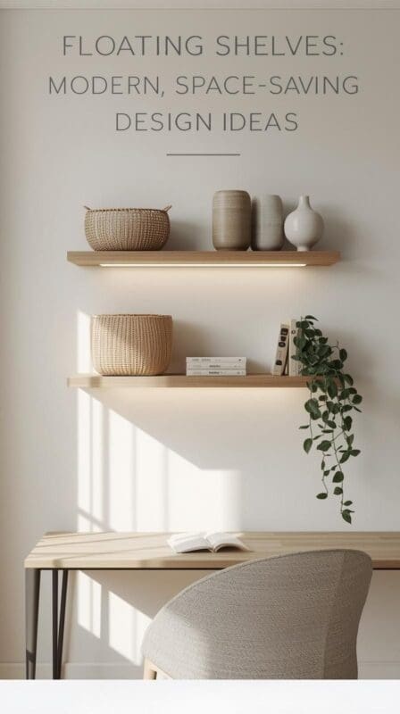 Floating shelves create a clean, weightless look and open floor space — a high-conversion keyword zone (“floating wall shelves for small spaces”).