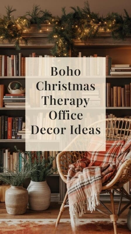 A boho Christmas therapy office blends festive warmth with grounded, earthy elegance. By choosing neutral colors, natural greenery, and cozy textures, you can celebrate the holiday season without overwhelming your clients. The result is a space that feels both professional and welcoming — the perfect atmosphere for counseling during the busy holiday season.