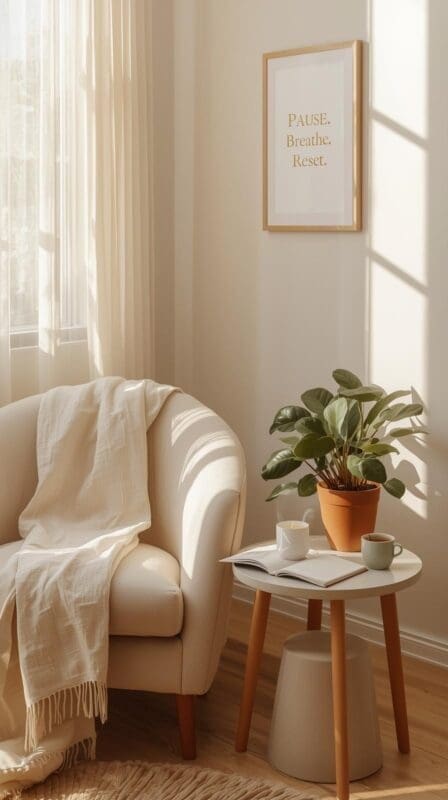 This could be a cozy chair, a window nook, or simply a small corner with a candle and journal.