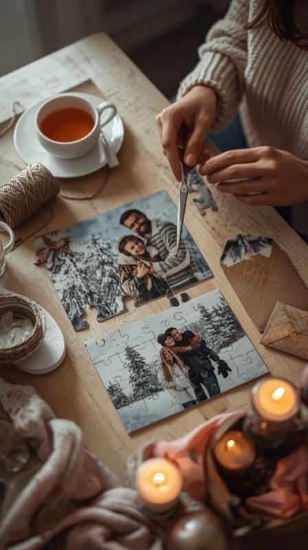 Cut a family photo or artwork into 24 pieces. Add one puzzle piece each day.