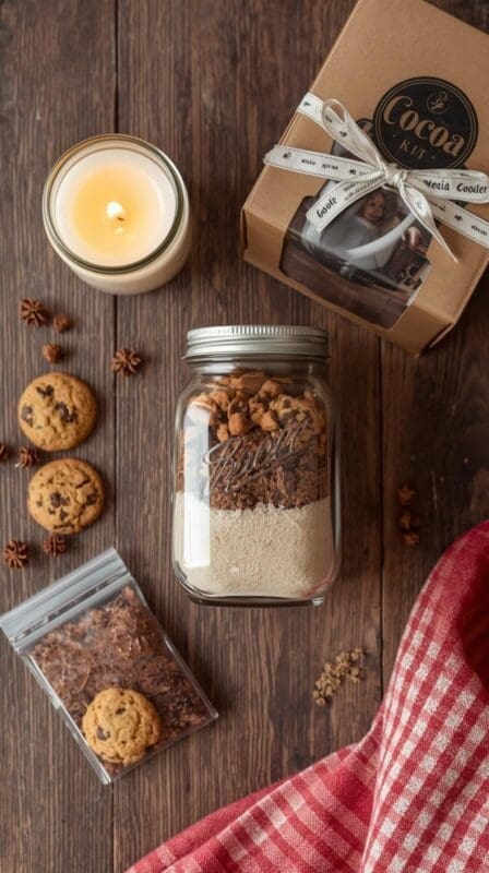 How to make it: Layer ingredients or separate into sachets. Attach a tag: “Mix 3 tbsp cocoa blend with hot milk and joy.”