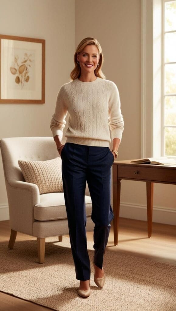 • Cashmere: While more luxurious, cashmere sweaters or cardigans can offer a polished, cozy look for days when you want to add a bit of elegance.