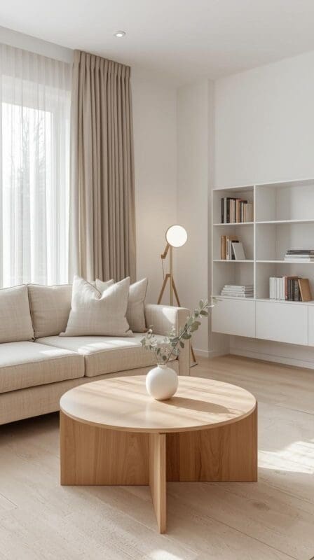 Minimalism begins with restraint. White, cream, beige, soft grays, and muted taupes create the backdrop for winter calm.