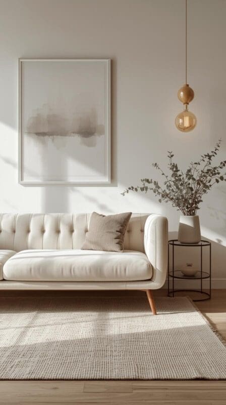 Choose one muted accent color for winter — deep green, navy, or soft burgundy. Incorporate it subtly: one pillow, one piece of wall art, or a single vase.