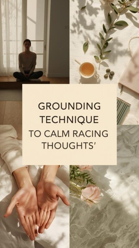 This step helps you anchor yourself in the here and now, taking your attention away from your racing thoughts. It’s like saying to yourself, “I am here, and I am present.”