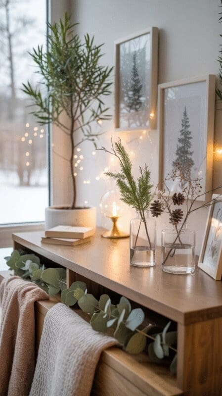Winter decor feels richer when mixed with subtle shine.